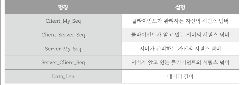 TCP 세그먼트(패킷의 기본 단위)의 연속된 데이터 번호(전송되는 세그먼트 데이터의 시작숫자 표기).